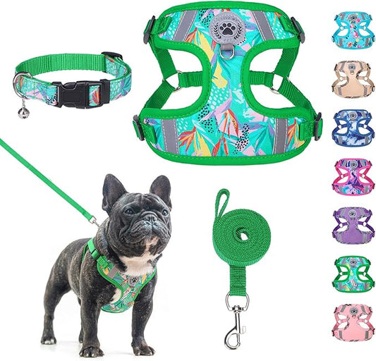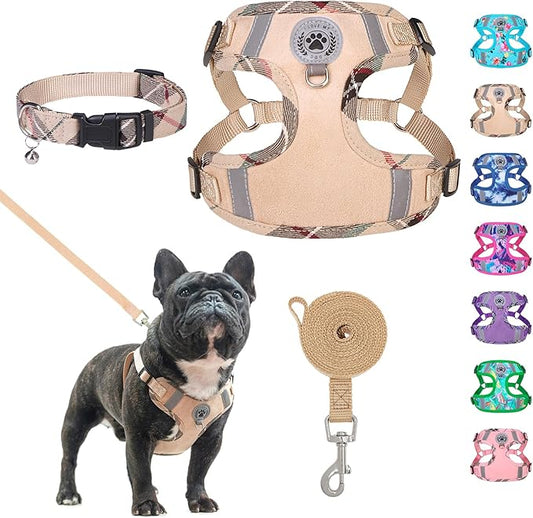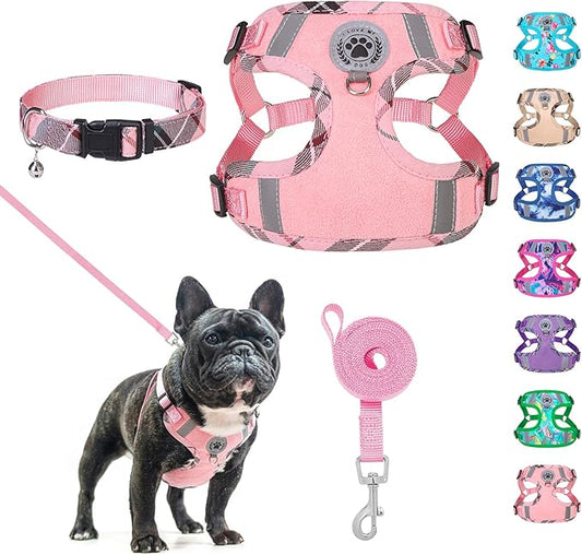 BEAUTYZOO Step in Dog Harness Collar and Leash Set for Small Medium Large Dogs, No Pull No Choke Puppy Harness, Soft Mesh Reflective Pet Padded Vest Adjustable for Doggie Girl or Boy,French Bulldog