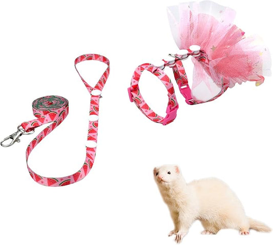 Ferret Harness and Leash Walking Vest Harness with Tutu Skirt Dress for Ferret Rat Hamster Small Pet Outdoor Vest