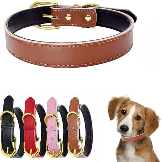 Leather Dog Collar for Dogs, Soft Touch Padded Thick Genuine Cowhide Gold Buckle Durable Pet Cat Puppy Collars Adjustable for XS Small Medium Dogs, Brown L