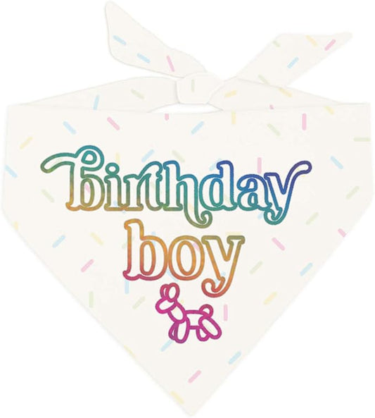 Birthday Boy Metallic Printed Dog Bandana | 100% Cotton Adjustable Triangle | Birthday Pawty | Party Theme | Celebration Supplies | Photoshoot Prop |Sprinkle, Multi-Colored Foil (1330)