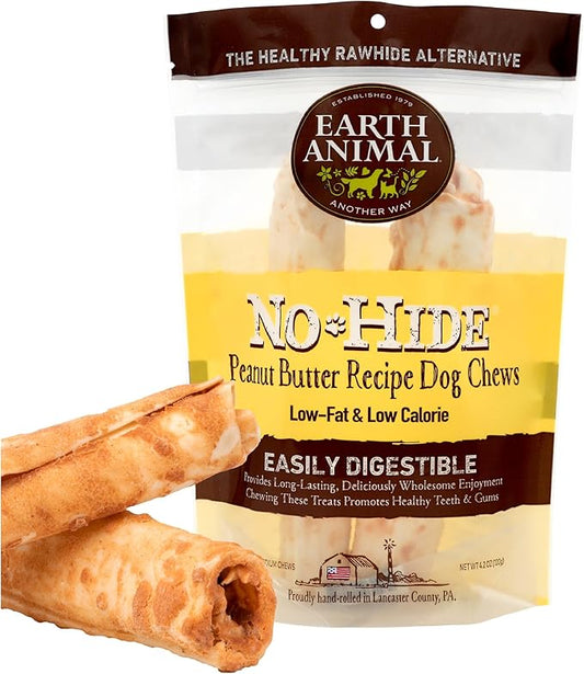 Earth Animal No Hide Medium Peanut Butter Flavored Natural Rawhide Free Dog Chews Long Lasting Chew Sticks | Treats for Large Dogs | Great for Aggressive Chewers (1 Pack)