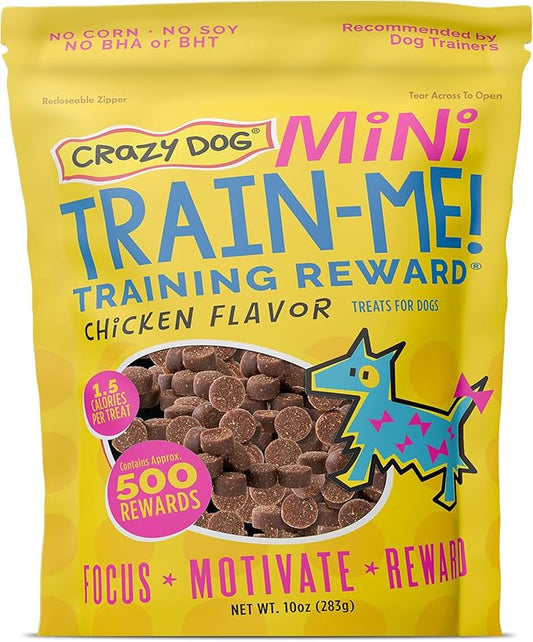 Crazy Dog Mini Train-Me! Training Treats 10 oz. Pouch, Chicken Flavor, with 500 Treats per Bag, Recommended by Dog Trainers
