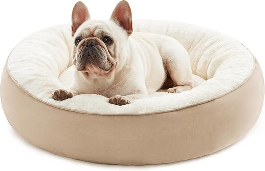 Love's cabin Round Donut Cat and Dog Cushion Bed, 25in Pet Bed for Small or Medium Dogs, Anti-Slip & Water-Resistant Bottom, Soft Durable Fabric Pet Beds, Washable Calming Cat & Dog Bed Camel