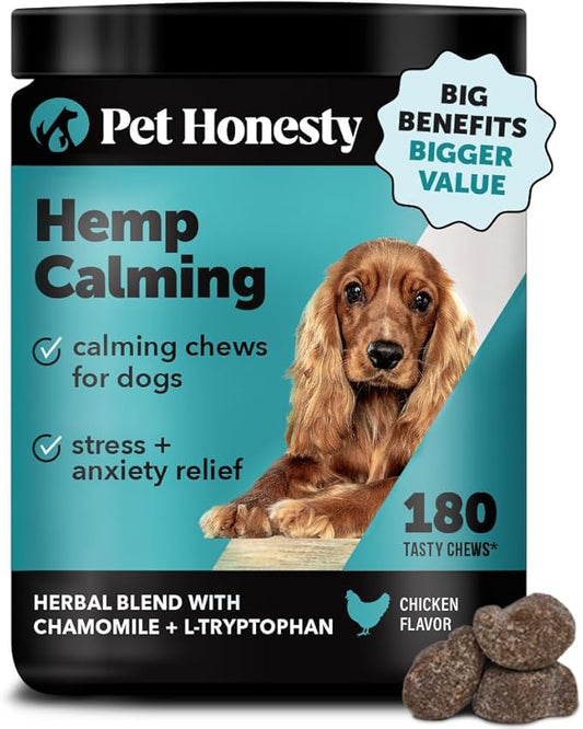 Hemp Calming Chews for Dogs - Dog Anxiety Relief, Dog Calming Treats with Hemp + Valerian Root, Melatonin for Dogs - Helps Aid with Thunder, Fireworks, Chewing & Barking (Chicken 180 ct)