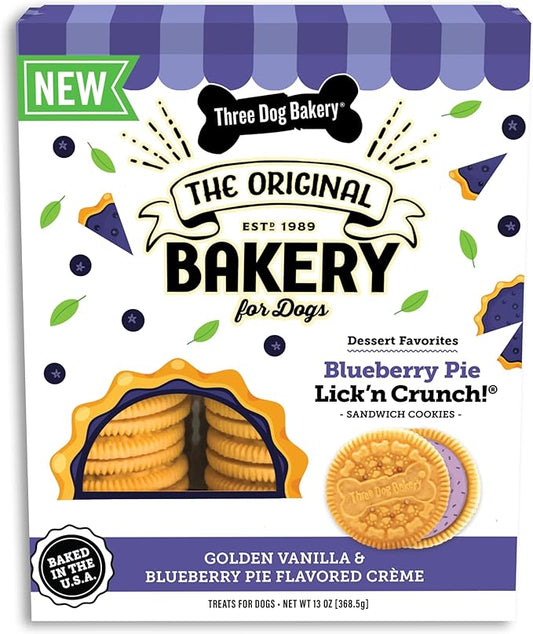 Three Dog Bakery Blueberry Pie Lick'n Crunch! Sandwich - Cookies with Real Blueberries, Puppy Cookies, Dog Birthday, Drool-Worthy Dog Bakery Snack