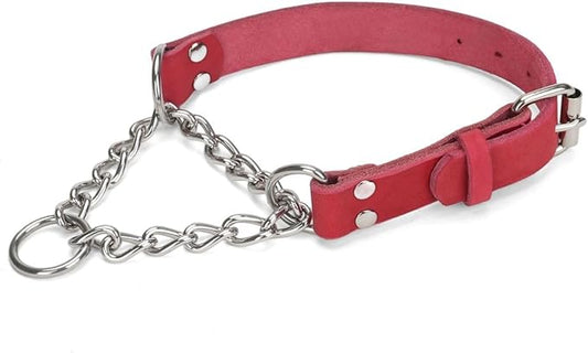 Martingale Collar for Dogs No-Pull Adjustable Training Collar with Stainless Steel Chain - Genuine Leather Anti-Slip Design for Small,Medium,Large Breed Dogs - Red (S)