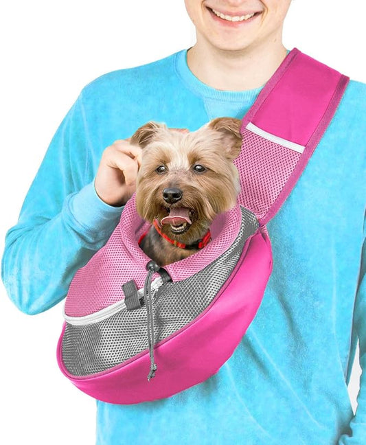 Pet Sling Carrier - Small Dog Puppy Cat Carrying Bag Purse Pouch -For Pooch Doggy Doggie Yorkie Chihuahua Baby Papoose Bjorn -Hiking Front Backpack Chest Body Holder Pack To Wear (Pink-L)