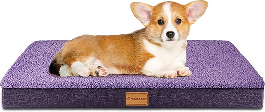 Patas Lague Orthopedic Dog Bed for Small Dogs, Soft Comfortable Waterproof Egg Crate Foam Small Pet Beds Mat with Removable Washable Cover, 20''X15'' Purple