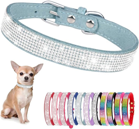 Rhinestone Dog Collar for Small Dogs, Bling Diamond Fancy Crystal Glitter Pretty Jewel Pet Puppy Collars for XXS XS Small Medium Large Breed Girl Dogs Female Cats Kitten, Teal M