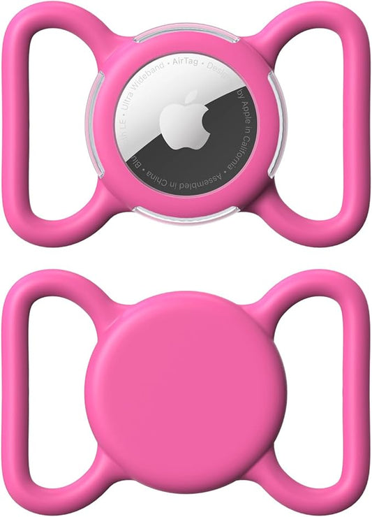 Waterproof Airtag Dog Collar Holder, Silicone & ABS Airtag Holder for Dog & Cat Collars, Ultra-Durable, Lightweight and Protective Airtag Case (Pink-1, Regular)