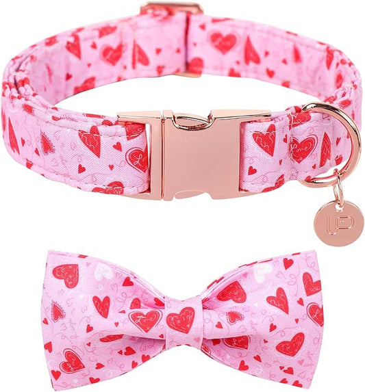 Valentine’s Dog Collar with Bow Tie, Pink Heart Bowtie Collar with Metal Buckle, Valentine’s Gift Pet Collar for Puppy Girl Boy Dog or Cat, Wedding Dog Collar, S