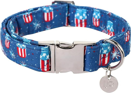 Patriotic Dog Collar, 4th of July Dog Collar, American Flag Collar for Puppy Boy Girl Dog or Cat, Comfortable Summer Collar with Metal Buckle, M