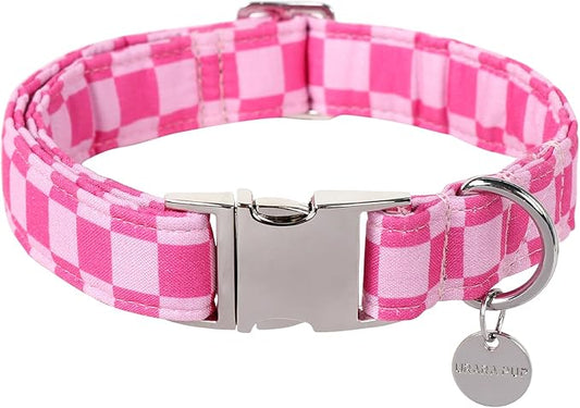 Dog Collar for Summer,Cute Pink Plaid Dog Collar,Cotton Puppy Collar with Adjustable Metal Buckle for Small,Medium,Large Girl Boy Dog