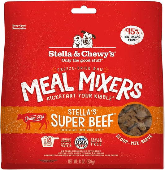 Stella & Chewy's Freeze-Dried Raw Beef Meal Mixers- Dog Food Topper and Mixer - Made with 95% Grass-Fed Beef, Organs & Bone - Perfect for Picky Eaters - Grain-Free - 8 oz