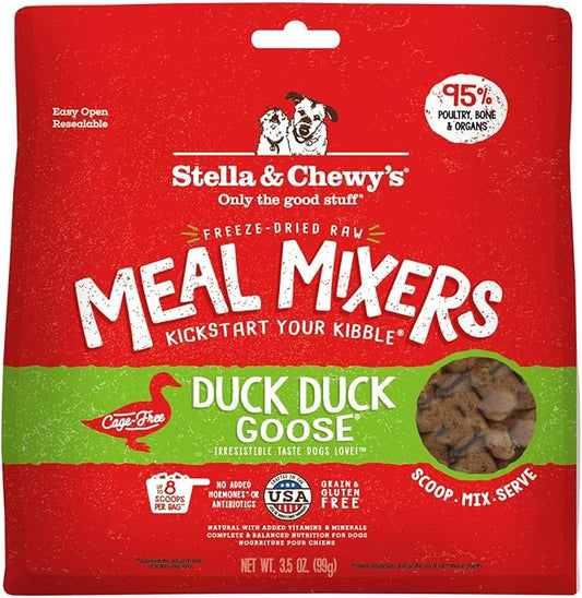 Stella & Chewy's Freeze-Dried Raw Duck Duck Goose Meal Mixers - Dog Food Topper and Mixer - Made with 95% Cage-Free Poultry, Organs & Bone - Perfect for Picky Eaters - Grain-Free - 3.5 oz