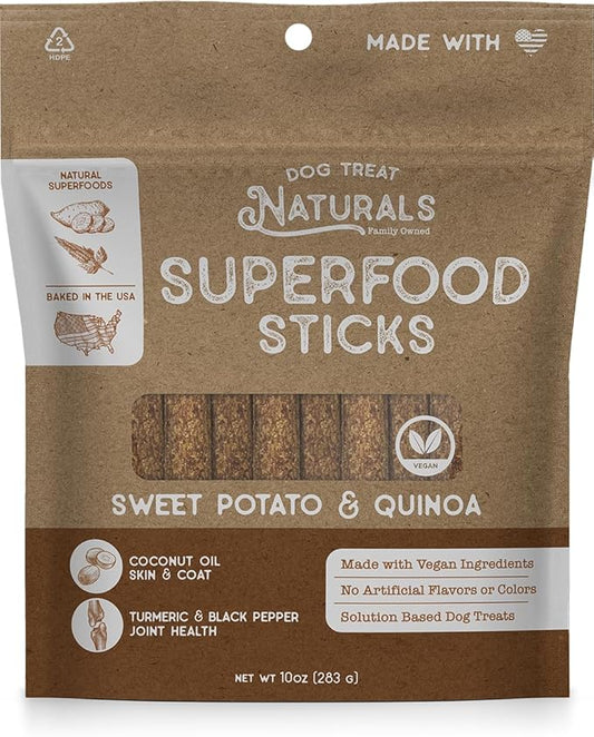 Sweet Potato & Quinoa Superfood Sticks for Dogs | Premium Training Treats | with Turmeric for Joint Health | Made with Real Sweet Potato & Quinoa | Made in USA | 10 Ounces