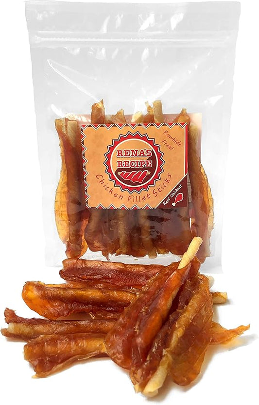 Rena's Recipe Chicken Fillet Sticks (8 Count) Rawhide Free Chicken Fillet Wrapped Chews with Glucosamine for Joint Health