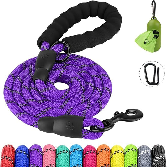 Joytale Reflective Dog Leash, Heavy Duty Nylon Rope with Poop Bag Holder, Highly Reflective Threads Leashes for Medium Large Dogs, Purple, 5'×1/2''