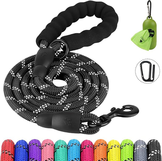 Joytale Reflective Dog Leash, Heavy Duty Nylon Rope with Poop Bag Holder, Highly Reflective Threads Leashes for Medium Large Dogs, Black, 6'×1/2''