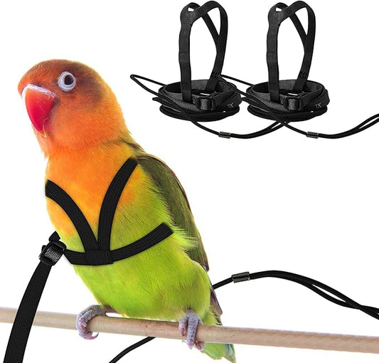 2 pcs Pet Parrot Bird Harness and Leash, Adjustable Training Design Anti-Bite, Outdoor Flying Training Rope Kit for Bird Parrots Fits Birds Chest Between24-51cm /9.45-20inch - M (Black