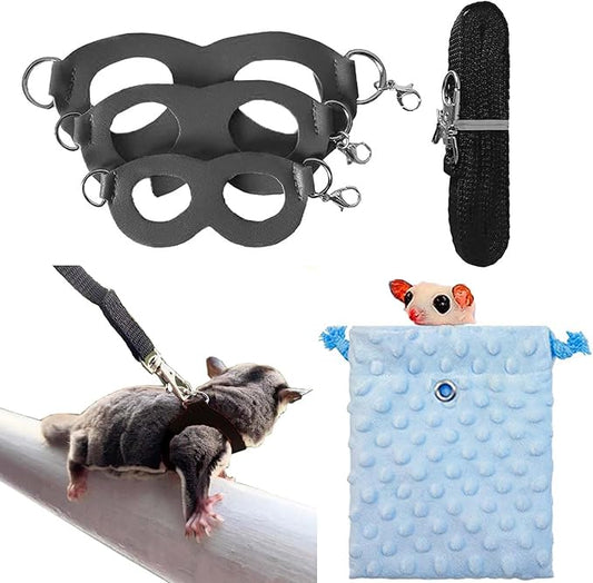 3+1 Sugar Gliders Harness Leash Set with Carrier Carry Carrying Bag Pounch Training Walking Gear Traction Rope Strap Small Animal Leash for Hamster Lizards Dragon Squirrels Rats