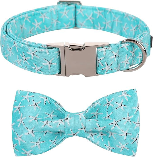 Lionet Paws Dog Collar with Bowtie - Summer Cute Cotton Adjustable Bowtie Dog Collar with Metal Buckle for Small Dog Girl Boy, S, Neck 10-16in
