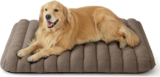 Lesure Cute Orthopedic Dog Bed for Extra Large Dogs, XL Waterproof Chic Flat Pet Beds with Removable Washable Cover, Fuzzy Thick Egg Crate Foam Pet Mat for Indoor Use (44" x 32", Brown)