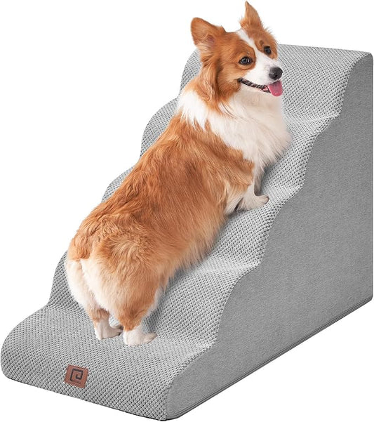 EHEYCIGA Curved Dog Stairs Ramp for High Beds, 5-Step Extra Wide Dog Steps for Small Dogs and Cats, Pet Stairs for High Bed Climbing, Non-Slip Balanced Pet Step Indoor, Grey