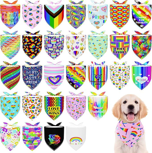 30 Pcs Rainbow Small Dog Bandanas Bulk 25 Inch Pride Dog Bandanas for Medium Dogs Breed LGBT Dogs Bandana Large Cats Grooming M
