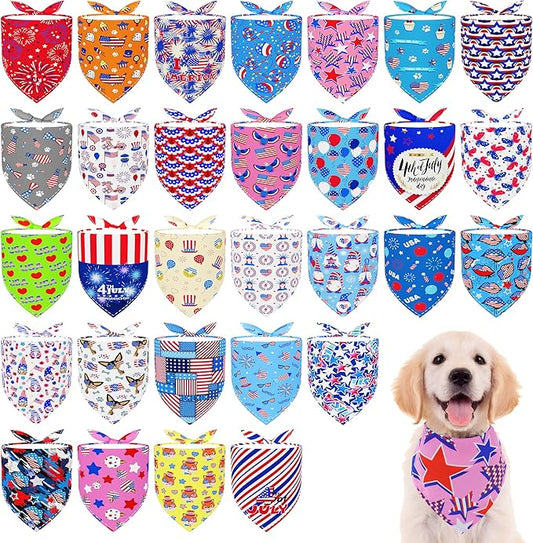30 Pack 4th of July Dog Bandanas Bulk for Small Dogs Kittens Breed 18 Inch Patriotic Dog Bandanas XS Puppy Doggy Independence Day Dogs Bandana Grooming S