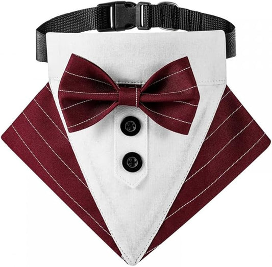Dog Bowtie Bandana, Adjustable Formal Dog Tuxedo Collar with Bow Tie Pet Bowtie Collar for Boy Dog Wedding Grooming Birthday Party