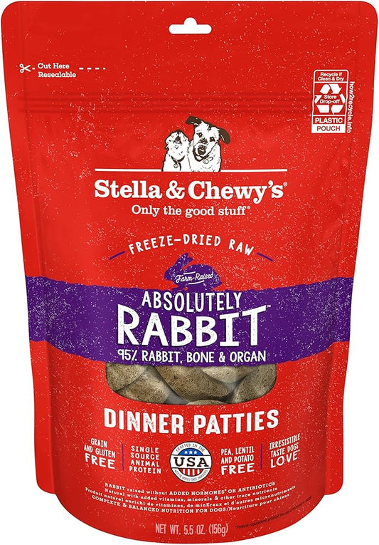 Stella & Chewy's Freeze-Dried Raw Dinner Patties - Absolutely Rabbit Recipe - High Protein Grain-Free Puppy & Dog Food - Perfect For Picky Eaters - 5.5 oz