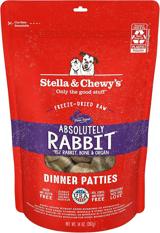 Stella & Chewy's Freeze-Dried Raw Dinner Patties - Absolutely Rabbit Recipe - High Protein Grain-Free Puppy & Dog Food - Perfect For Picky Eaters - 14 oz