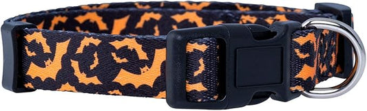 Native Pup Halloween Dog Collar- Spooky Fall Themed Horror Costume Collars- Skull, Pumpkin, Ghost, Bat, Witch, Candy Corn, Spider- Adjustable for Small, Medium, Large Breeds (Small, Orange Bats)