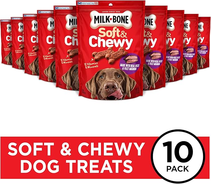 - Contains ten (10) 5.6 ounce packs of Milk-Bone Soft & Chewy Dog Treats