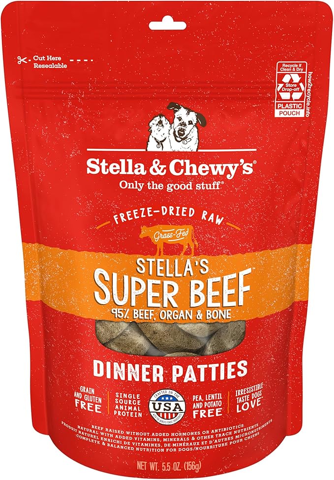 Stella & Chewy's Freeze-Dried Raw Dinner Patties - Beef Recipe - High Protein Grain-Free Puppy & Dog Food - Perfect For Picky Eaters - 5.5 oz