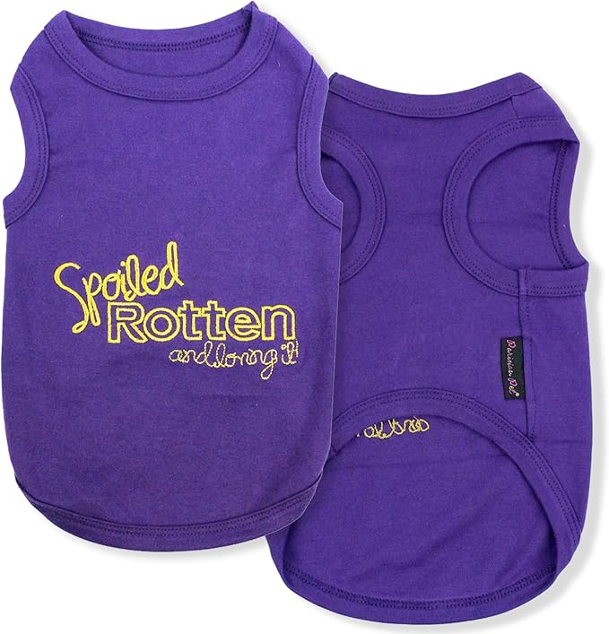 Parisian Pet Dog T-Shirt - Embroidered Spoiled Rotten Dog Clothes - 100% Cotton, Sleeveless Pet Vest - Machine Washable Shirts for Small Dogs XS