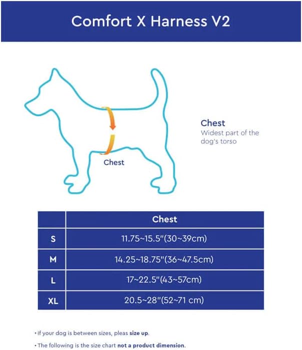 - PATENTED CHOKE FREE X FRAME - Comfort X Harness is made with a patented choke free design with chest strap creating a X. Our no choke dog harness sits below the usual neck area, reducing the stress pressed on the neck. By placing the D ring on the back, pull trajectory is lowered, reducing the chance of harness being pulled up to choke the dog (US D823,556 S/ US D850,021 S).
