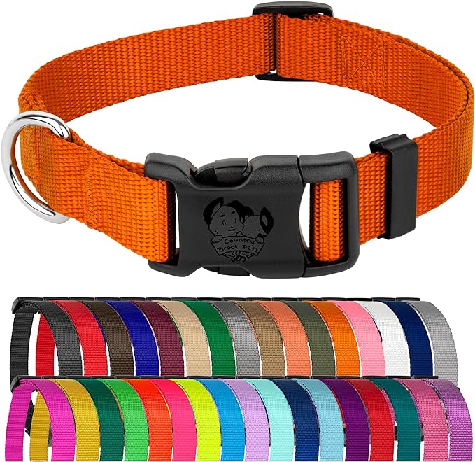 Country Brook Petz - American-Made Dog Collar for Large, Medium, and Small Dogs and Puppies - Deluxe Heavy Duty Nylon in 33 Dazzling Colors (Medium, 3/4 Inch Wide, Orange)