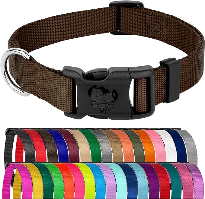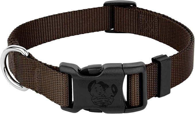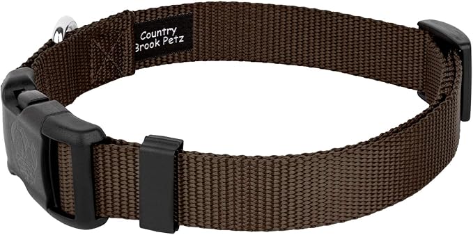 Country Brook Petz - American-Made Dog Collar for Large, Medium, and Small Dogs and Puppies - Deluxe Heavy Duty Nylon in 33 Dazzling Colors (Large, 1 Inch Wide, Brown)
