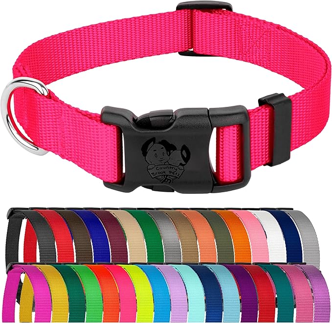 Country Brook Petz - American-Made Dog Collar for Large, Medium, and Small Dogs and Puppies - Deluxe Heavy Duty Nylon in 33 Dazzling Colors (Extra Large, 1 Inch Wide, Hot Pink)