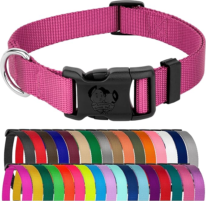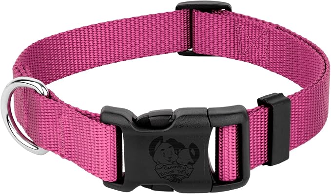 Country Brook Petz - American-Made Dog Collar for Large, Medium, and Small Dogs and Puppies - Deluxe Heavy Duty Nylon in 33 Dazzling Colors (Large, 1 Inch Wide, Rose)