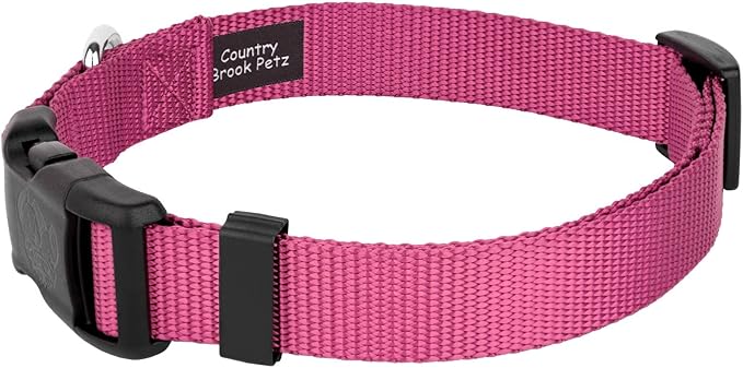 Country Brook Petz - American-Made Dog Collar for Large, Medium, and Small Dogs and Puppies - Deluxe Heavy Duty Nylon in 33 Dazzling Colors (Small, 3/4 Inch Wide, Rose)