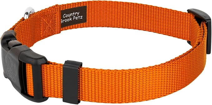 Country Brook Petz - American-Made Dog Collar for Large, Medium, and Small Dogs and Puppies - Deluxe Heavy Duty Nylon in 33 Dazzling Colors (Large, 1 Inch Wide, Orange)
