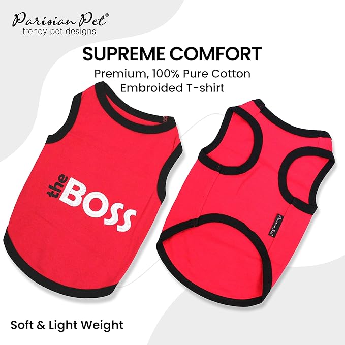 Parisian Pet Dog T-Shirt with Embroidered 'The Boss' - Lightweight Dog Clothes - Sleeveless Dog Outfit Boss - Dog Shirts for Small Dogs, S