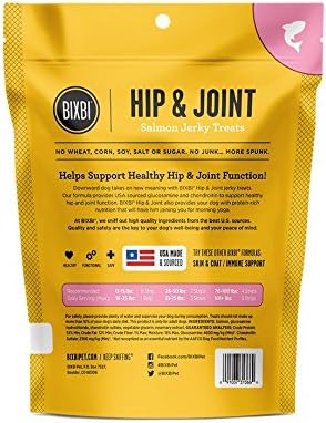 BIXBI Hip & Joint Support Salmon Jerky Dog Treats, 4 oz - USA Made Grain Free Dog Treats - Glucosamine, Chondroitin for Dogs - High in Protein, Antioxidant Rich, Whole Food Nutrition, No Fillers
