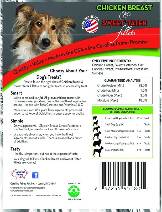 Carolina Prime Pet Chicken Breast & Sweet Tater Fillets (1lb.) - Naturally Nutricious Dog Treats