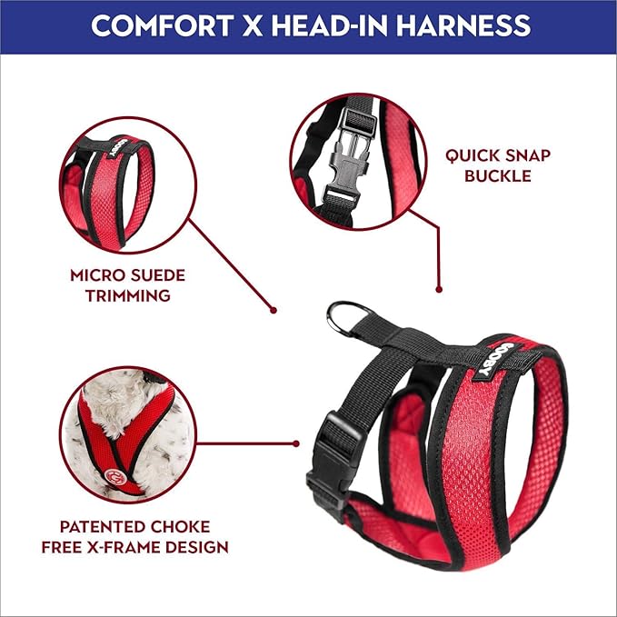 Gooby Comfort X Head in Harness - Red, Medium - No Pull Small Dog Harness, Patented Choke-Free X Frame - Perfect on The Go Dog Harness for Medium Dogs No Pull or Small Dogs for Indoor and Outdoor Use