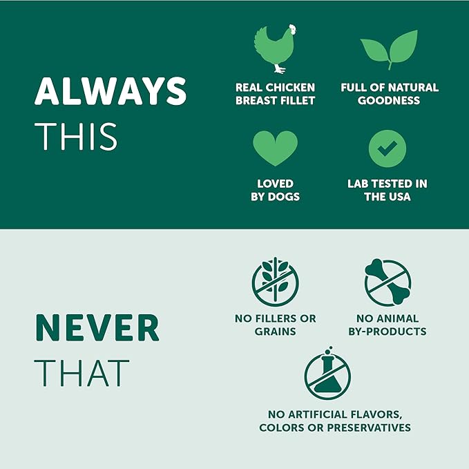 - FLAVORFUL - Packed with nutritious goodness and natural chicken flavor, your dog will love the aroma, texture, and taste. These tenders can easily be broken into smaller pieces for a great low-fat training reward, making them a perfect treat for dogs of all ages, breeds, and sizes.