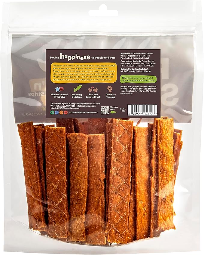 Pet 'n Shape Chik 'n Sweet Potato Strips Dog Treats– Made and Sourced in the USA- 14 Ounce